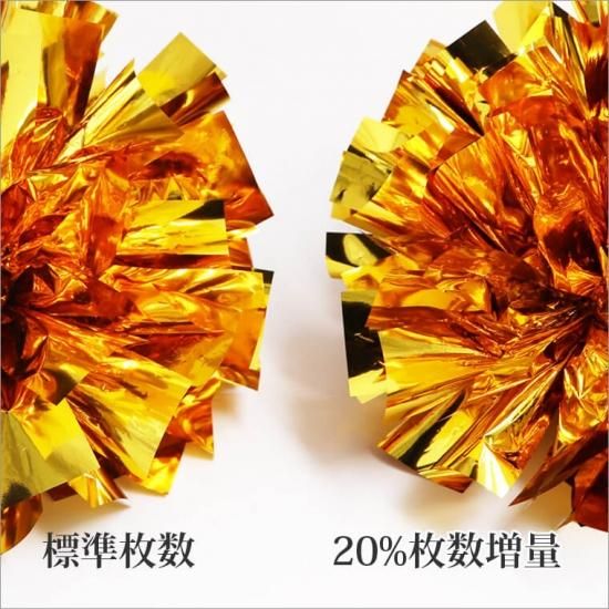一般的なチア用ポンポンとくらべ、テープ枚数を多くしました(他社比較で約1.5倍)。それにより密度が増し、きれいな丸型になり高品質なポンポンに。